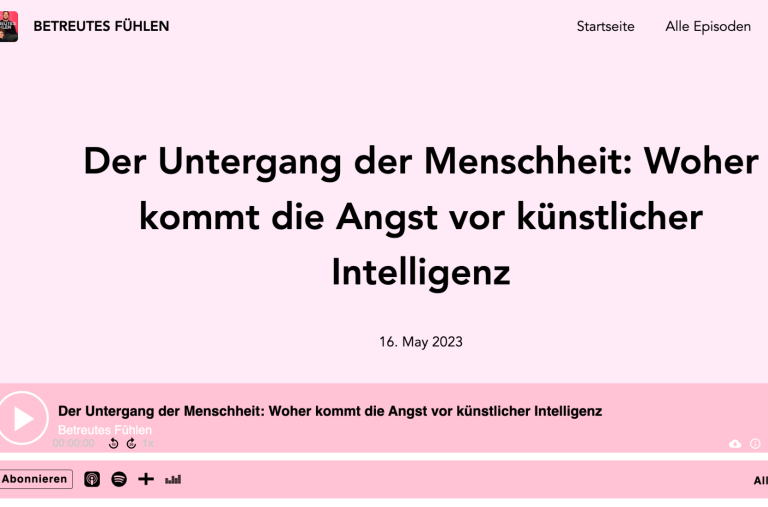 Im Podcast "Betreutes Fühlen" mit Atze Schröder und Dr. Leon Windscheid sprach ich über die Gefühle, die KI bei uns auslösen und warum wir uns vor der Technologie nicht zu fürchten brauchen.
